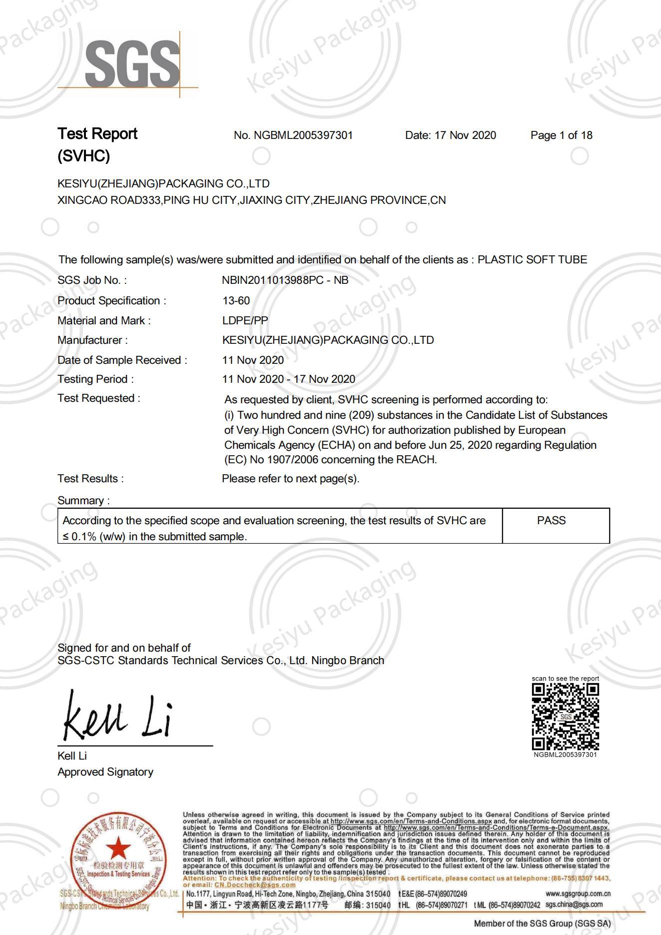 Kesiyu(Zhejiang) Packaging Co., Ltd. We are manufacturing extruded plastic tubes (PE tube/Laminated tubes) for cosmetics, food, pharmaceuticals, household, personal care, toothpaste, and industrial sugarcane tube packaging