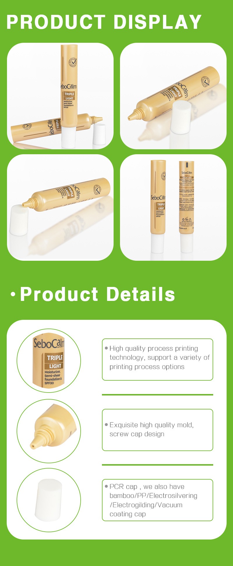 As a professional Plastic Packaging manufacturer and exporter, we can produce every kind of plastic soft tube packaging. So no matter what you need, we can fulfill your plastic packaging needs. You can certainly trust our quality control to meet your highest level of requirements. Our products can be made according to clients' sample or design .